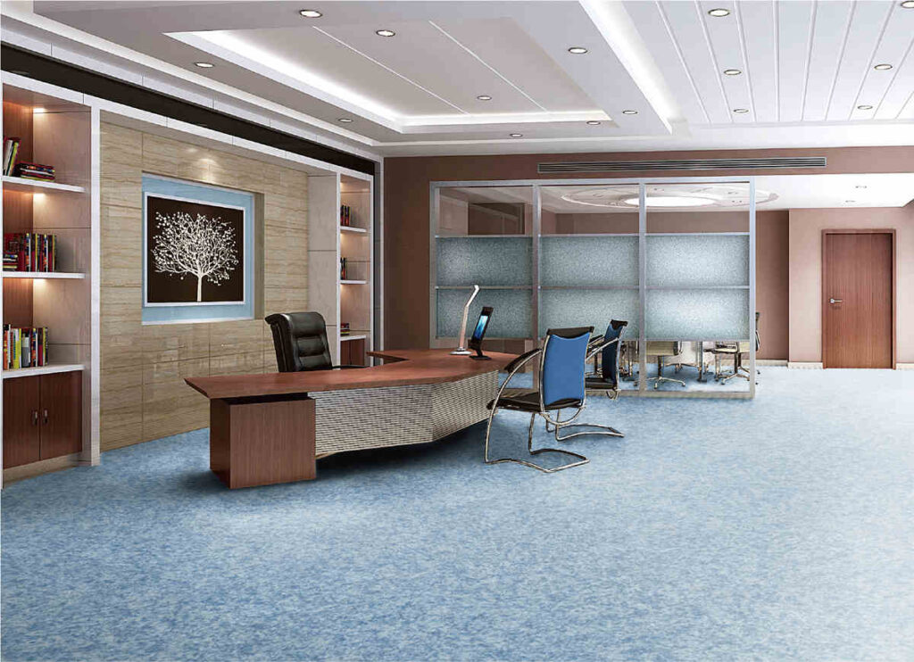 Heterogeneous vinyl sheet flooring is the multi layer flooring with different contents from top bottom. It combines with UV layer, Wear layer, Printed layer, Glass-fiber layer and Backing layer. It can be custom printed with all kinds of stylish patterns and innovation designs. With the advantage of cushioning, comfort, waterproof, durability and affordability, it is the perfect choice for public areas need luxury vinyl sheet such as: school, mall, office, GYM and workshop.